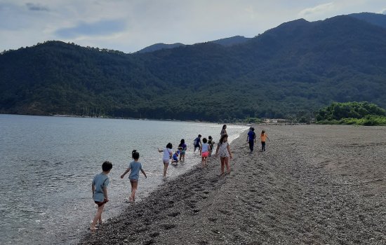 Yerdeniz Okulu’nda neredeyse hiç yapılandırılmamış bir gün akışı takip ediyoruz. Etkinlik temelli hareket etmek yerine, günün bize ne sunduğuna bakıyoruz. Neler yapacağımızı hava koşulları ile çocukların merakları yönlendiriyor. Neler yapacağımızı önceden planlamak yerine, biz rehberlerin heybesinde ne varsa onunla katılım gösteriyoruz. Çocuklarla bir aradayken eğer masal anlatmanın ya da kitap okumanın zamanı gelmişse bunu, eğer Ateş ve Su oyunu oynama zamanı geldiğini düşünüyorsak da bunu yapıyoruz. Kamp ateşi için akşam odun toplamamız gerekiyorsa çıkıp topluyoruz, eğer odunları kesmemiz gerekiyorsa da tüm çocuklar testere kullanma fırsatını değerlendirmiş oluyor. Dikkatimizi çeken bir karınca kolonisini uzun uzun seyredebiliyoruz. Önceden detaylı bir planlama yapmak ya da yapılandırılmış kontrollü bir ortam yaratmak, maalesef ‘anda’ ortaya çıkan potansiyeli görmemizi engellediği gibi çocuğun etrafıyla ve doğayla etkileşime girmesinin de önüne geçiyor. Biz bunu istemediğimiz için anda olmaya, mevcut kalmaya odaklanıyoruz.